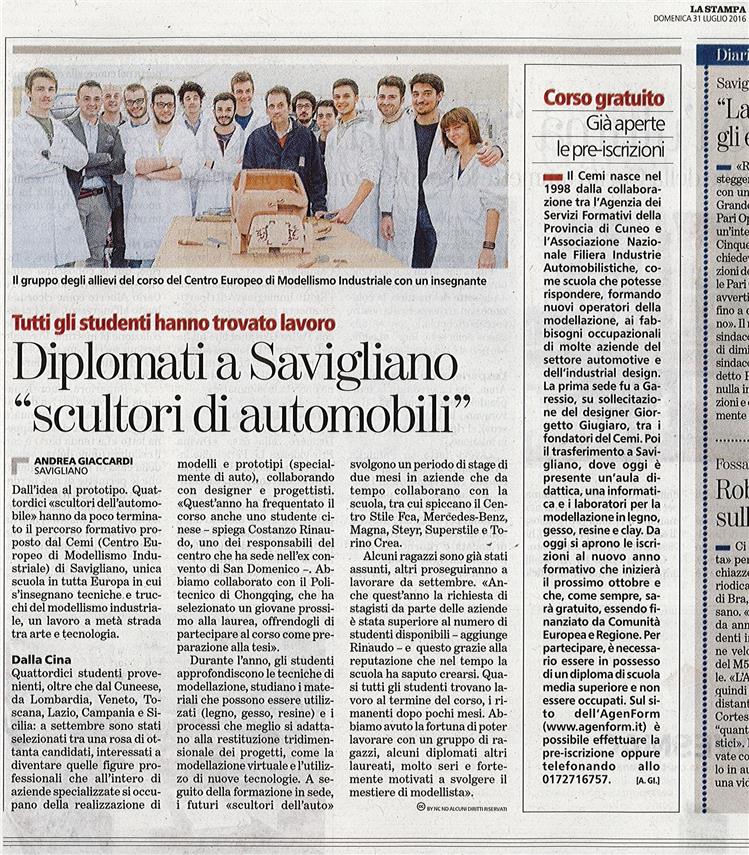 La Stampa" di Domenica 31 Luglio 2016 che racconta l'anno formativo del Corso "