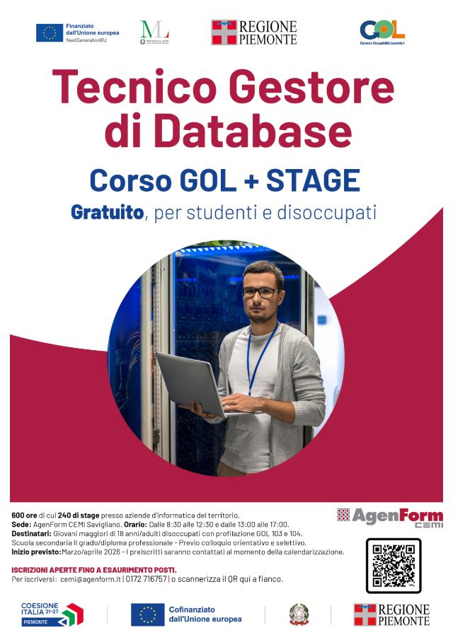 Per questo motivo cresce anche l’offerta di percorsi formativi dedicati a queste competenze. Tra questi rientra il corso GOL di Tecnico Gestore di Base Dati, che permette di acquisire conoscenze pratiche sulla gestione dei database e sull’utilizzo di strumenti come SQL e Python.
